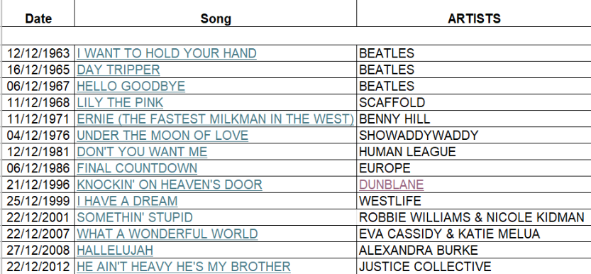 "December No#1 Hits that were not about Christmas" |