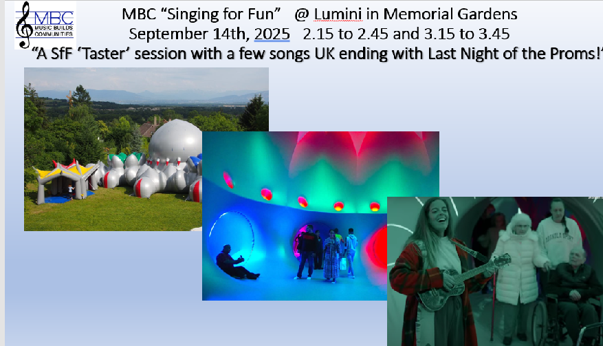 Each session will include the 4 “Last Night of the Proms” songs preceded by 2 or 3 songs typical of a SfF session.