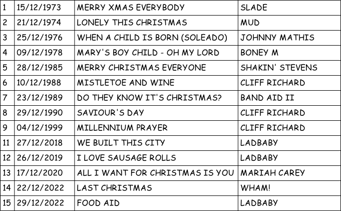 Song List showing the selections for the December 17, 2025 “November Hits” session from which a selection will be made by our participants