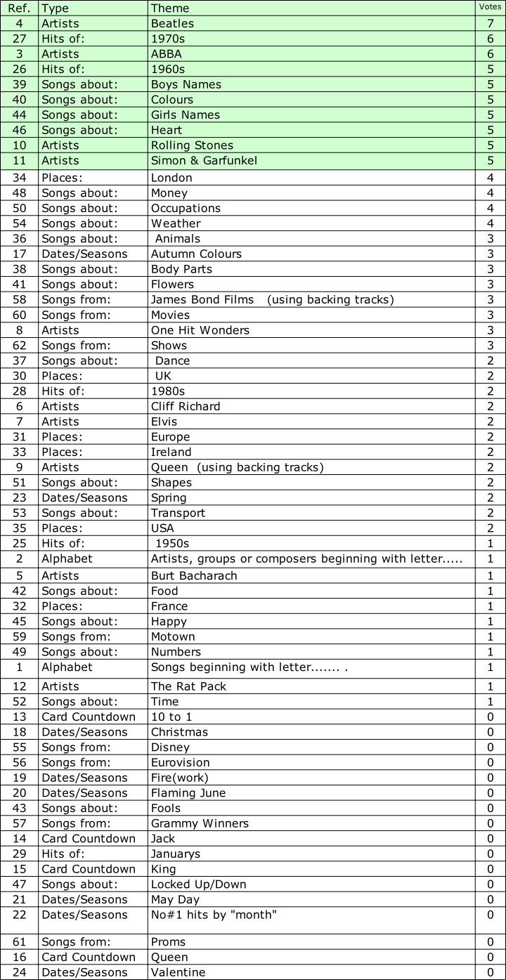 This is a summary of the votes cast showing the selected themes.